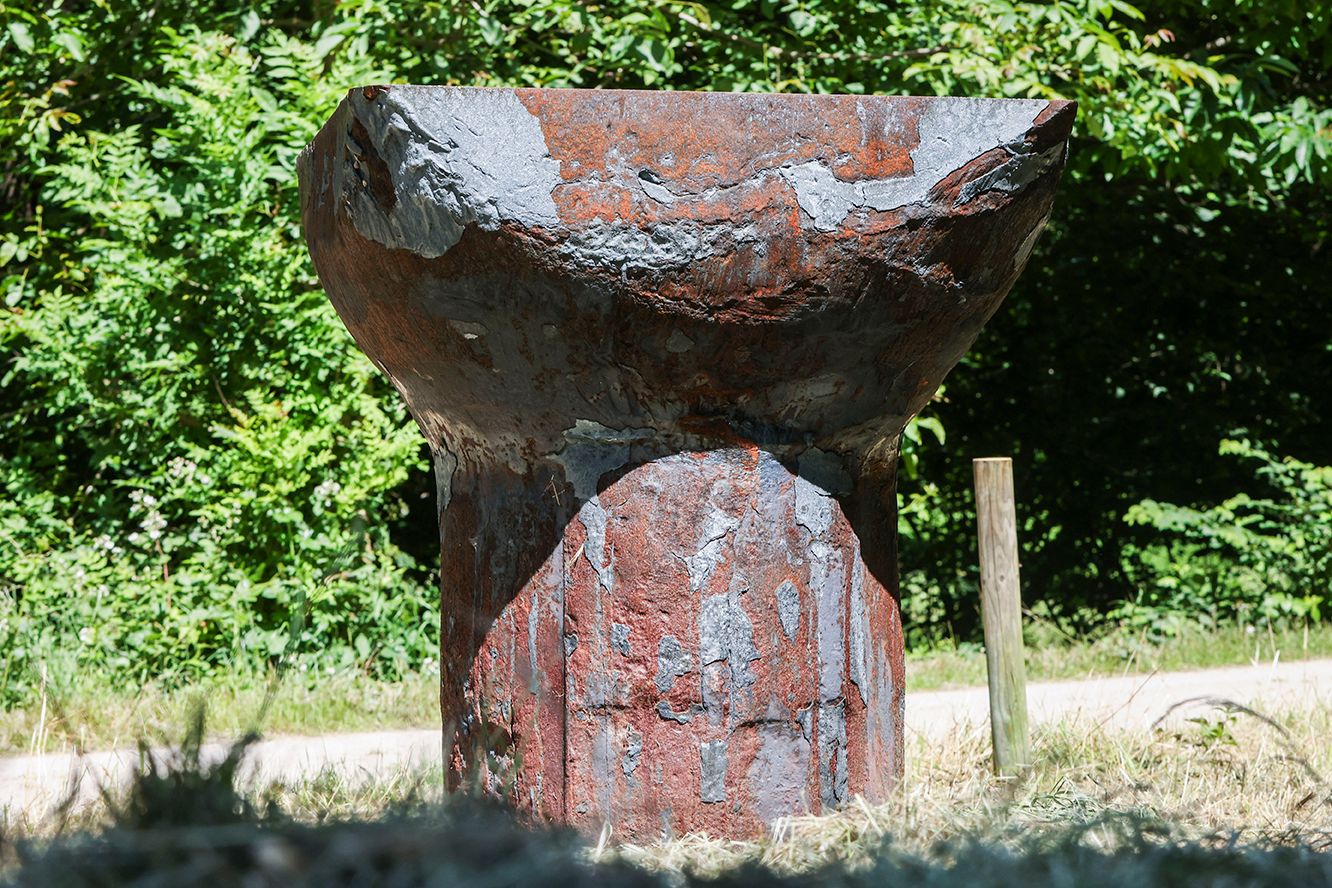 Markus F. Strieder verblüfft mit monumentalen geschmiedeten Stahlquadern, Ringen oder zu Körpern transformierten Linien. Geerdet und weich scheinen sich archaische Formen aneinander zu schmiegen, scheinbar spielerisch rollen sich Stahlskulpturen auf dem Boden, doch die Leichtigkeit täuscht. Die Ahnung um das ungeheure Gewicht der massiv gefertigten Arbeiten bringt unser Wissen physikalischer Gesetze ins Wanken und lösen durch die radikale (Um)Bearbeitung von Materie eine neue Zeit und Raumerfahrung aus. So auch das Werk Etreinte am Kunstweg am Reichenbach mit seinen ca. 850 kg. Man könnte meinen, die Zeit bleibt stehen: Jetzt ist immer - ein Kriterium für gelungene Kunst.